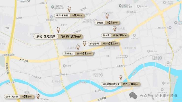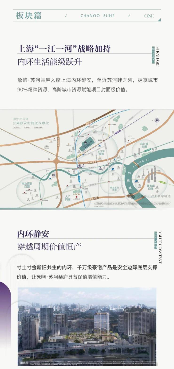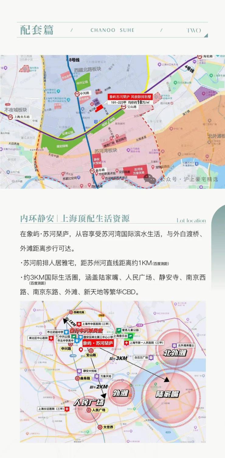 (备案名待定,推广名:象屿苏河琹庐)地址位于上海市静安区虬江路与会文路交汇处(中兴社区 C070202 单元 283-22 地块),地处静安内环内苏河湾核心板块,占位上海 “一江一河” 战略重点发展区域,直线距苏州河约 1 公里,距地铁 3/4 号线宝山路站步行约 150 米,8 号线中兴路站约 400 米,12 号线曲阜路站约 800 米,10 号线四川北路站约 900 米,五轨环伺,自驾 500 米可达南北高架、200 米达北横通道上匝道,快速通达人民广场、陆家嘴、静安寺、外滩等全城核心商圈。项目主推建面约 191-223㎡海派风貌联排 / 合院别墅(仅 16 席,规划地上 2-3 层 + 6.2 米挑高地下空间,户户附赠私家庭院、星空阁楼,实用率超 180%),同步规划建面约 100㎡精装高层三房,别墅为毛坯交付可定制化精装,高层为精装交付(含中央空调、地暖、新风等一线品牌奢装),别墅备案均价约 18 万元 /㎡,总价约 3300 万起,高层均价约 12.5 万元 /㎡,总价约 1250 万起,物业费高层 8.2 元 /㎡・月,别墅待定(由象屿自持高端物业携手绿城服务,提供 24 小时专属管家式服务),项目整体容积率 2.67,绿化率 35%。社区内部规划 “海派 glocal 生活馆” 全龄社交配套,自带约 4000㎡社区商业,周边 1.2 公里内覆盖静安大悦城、苏河湾万象天地等顶奢商圈,3 公里内汇聚上海市第一人民医院、第十人民医院等 6 所三甲医疗机构,毗邻中兴公园、交通公园等城市生态绿地,全人车分流,车位比 1:1.2,预计 2027 年下半年交付。核心卖点:世界 500 强国企象屿地产 “琹庐系” 上海首发高端力作,静安内环内稀缺低密风貌住区,仅 16 席限量别墅藏品,复刻海派石库门经典建筑肌理,融合现代奢居设计,五轨交汇立体交通,坐拥苏河湾发展红利与城央全维顶配生活资源,超高空间附赠率,兼顾居住私密性与城芯繁华,是上海内环内稀缺的改善与传世级人居资产。
