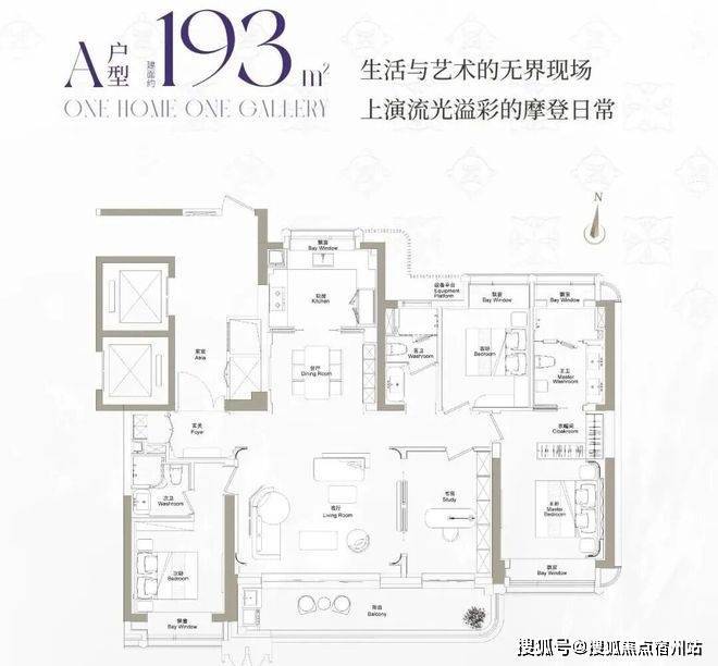 193㎡户型配独立家政间、中西双厨、270°环幕阳台