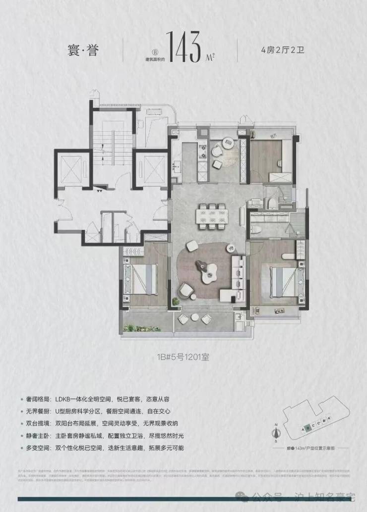 3.5代住宅革新设计:高得房率(约90%)、LDKB一体化、全明格局、南北通透,居住体验对标大平层