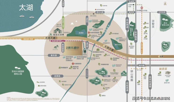 继南大落址新区,高新区政府积极抢抓机遇,在科技城的肩膀上,升级打造太湖科学城;在2035苏州国土规划中提出了:引领共建太湖世界级湖区,衔接G60科创走廊,共建环太湖科创圈,太湖科学城与苏州工业园区并级,成为苏州两极之一;