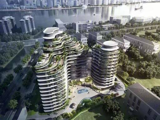 聘请了国际知名设计事务所--EID Arch 设计,EID秉承着将建筑艺术化的理念,大胆采用波浪形状的建筑外形并巧妙融入独特的层层退台式弧形曲线设计,完美将当代时尚元素诠释东方的空间传统与江南人文精神;外立面通过石材、铝板及真石漆相结合呈现十足的未来感。在有限的地块内,我们的建筑大师及设计团队反复研究建筑方案,最终巧妙的将江景与纯现代外立面相融合,呈现大露台环幕景观视野,使居住者能够拥享临岸滨江风景。同时该建筑还获得了2018年度房地产大奖最佳高层住宅建筑(International PropertyAwards),并被评委会提名为年度全球最佳高层住宅设计,获得上海市建筑学会第七届建筑创作奖-居住建筑类佳作奖以及 2024年第十届地建师设计大奖金奖。