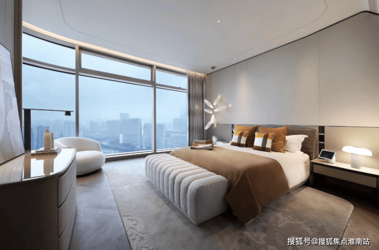 大尺度的高效利用,也让EIC大平层呈现出更多超越此前的空间享受。南向三个套房,24米的开间,停得下4辆加长林肯。进入主卧,罕见的主卫双开门设计,比一般人的主卧都要大,鱼肚白通顶,劳芬捷仕满配,甚至连公卫都是劳芬智能马桶,在这里泡澡,根本不用考虑窗帘。