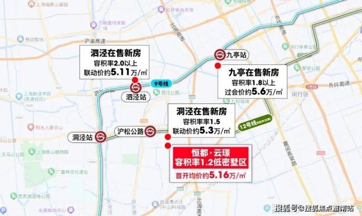 12号线西延伸沪松公路站旁(在建中),容积率仅约1.2的恒都·云璟火热认购中!主推建面约91㎡洋房和建面约150-160㎡别墅,均价约5.16万/㎡!