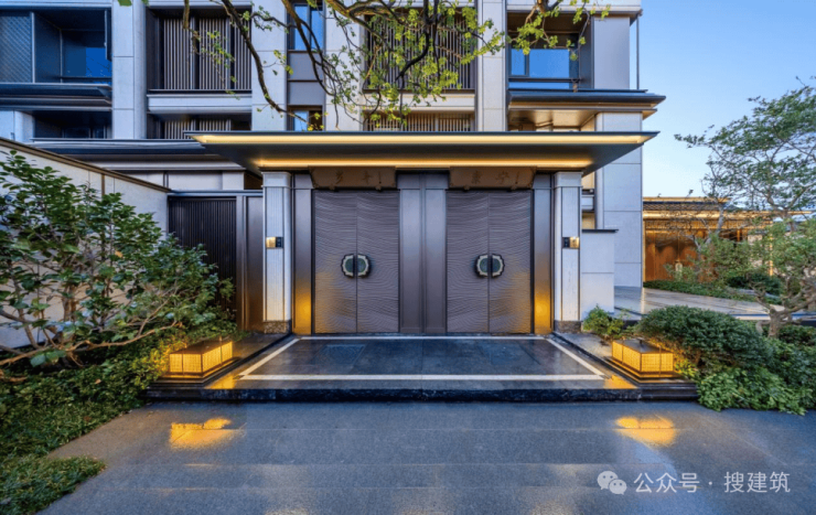 宋式美学设计:外立面采用石材+铝板+宋风线条,归家仪式感强