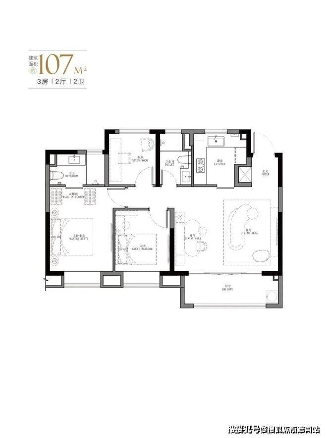 产品:103㎡、107㎡的三房两厅两卫及123㎡、129㎡的四房两厅两卫。