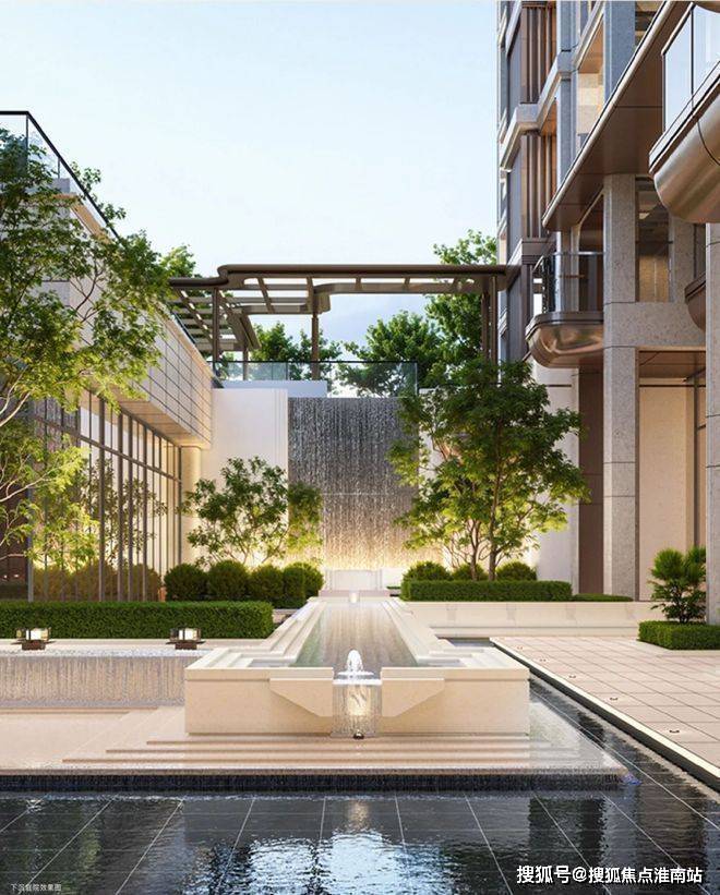 立体园林以多层次水系与艺术雕塑,营造“城心绿洲”的静谧氛围;
