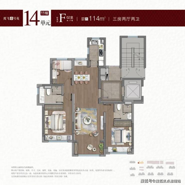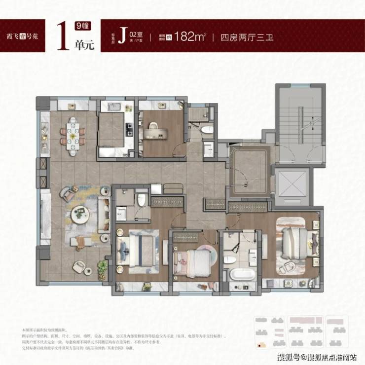 项目推售建面约100-114-121㎡3房,建面约141-182-188㎡4房