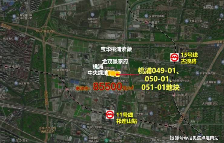 2023年8月,上海二批次土拍,宝华&东苑以总价328800万元成交普陀区桃浦科技智慧城(W06-1401单元)049-01、050-01、051-01地块,溢价率4.05%,楼板价43655元/㎡,房地联动价85500元/㎡。