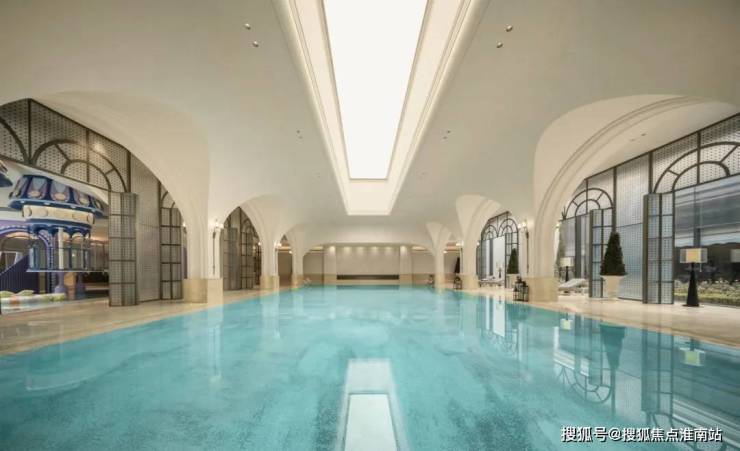 地下会客厅约1500㎡空间内——打造了高达8.2米左右挑空穹顶泳池、杭州住宅园区首个亲子泳池综合体以及可满足羽毛球、匹克球等球类活动的多功能球场。
