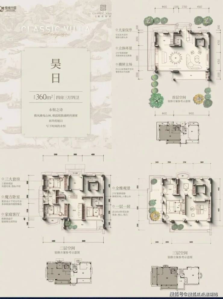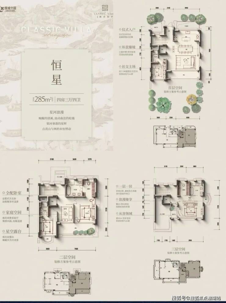 叠排产品遵循“现代形、东方意”内涵,低密产品,最主要追求的就是“有天有地,有私密感”,所以附加值的打造,变得尤其重要。所以,我们先讲的是附加值。建筑面积约235~300㎡四层庐系叠墅,