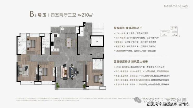 B户型 珺玉丨四室两厅三卫 建筑面积约210m²