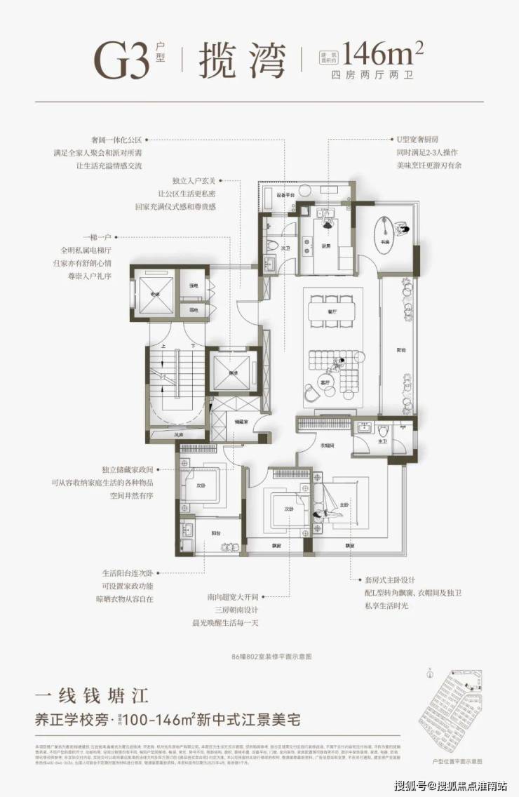 建面约100-146方宽宅,最大化瞰江、景观、采光、通风等,不仅尺度奢适,而且总价可控。