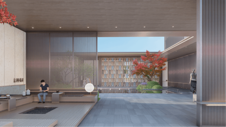 在这里为洋房打造了花园雅集、尊享门厅、一层大堂、以及入户大堂,带来了设阔感!
