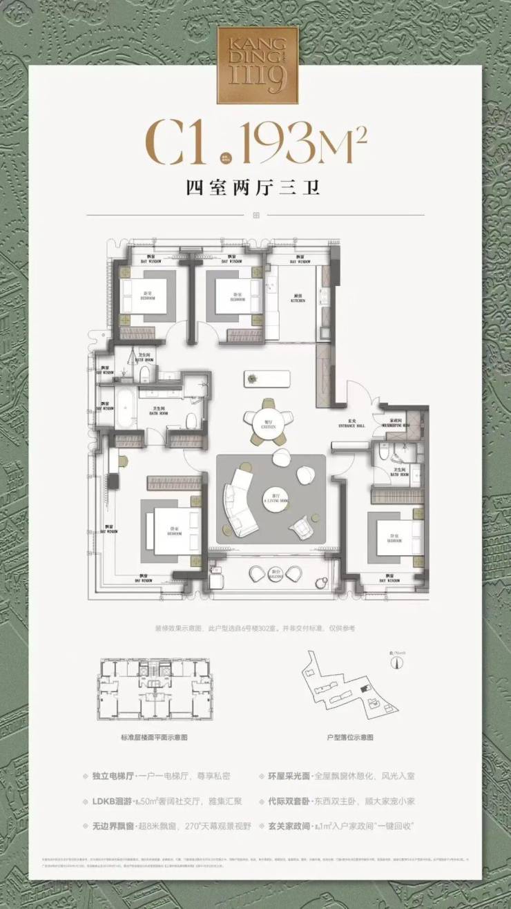 193㎡户型完全就是豪宅的大尺度!保守的说,可以跟市面上几乎所有230+㎡户型对标!