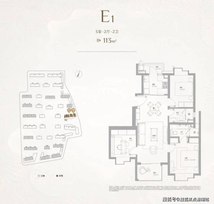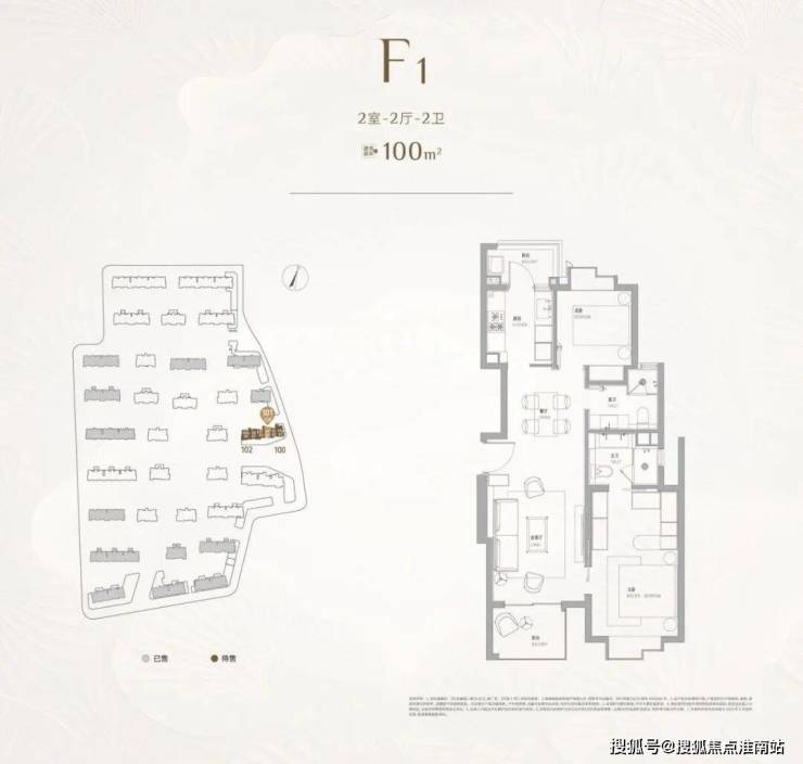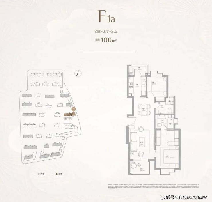二室户型:建面约102㎡,主力为最后批次小户型,仅少量在售