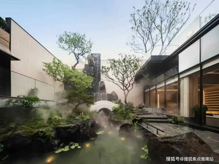 示范区师法留园“缩景乾坤”之精妙,在小尺度空间中营造三进庭院,打造约1500㎡原著世家典藏馆。一进“芳薇院”,精选300年老桩紫薇置于整块顶级汉白玉打造的盆器内,是苏派盆景的“缩景”艺术集大成体现。穿过“玲珑幻廊”,二进庭院“玲珑万象”视线豁然开朗,四水归堂下的日照金山昆仑雕塑、以及月榭观澜内的雨打芭蕉和月洞门,带来桃花源记般的视觉惊喜。三进下沉庭院,取意“高山流水”,8米高的龙门叠瀑顺势而下,汉白玉精雕石拱桥复刻网师园引静桥,水下群鲤欢腾,蕴含着“鲤跃龙门”的美好祝福。游园入院间,喧嚣渐远,浮躁尽褪,完成从见自然、到见天地、再到见内心的情绪升华及情感共鸣。