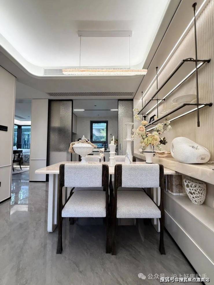 归家门厅设计为弧形顶棚,非对称构图,圆润的形式提供给业主放松的情绪价值。可以说是处处体现人居的松弛感和舒适度。