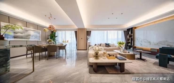 作为西投银泰城上仅此的300㎡平层宽境,映萃就如同这艘“游轮”上的头等客舱。以8号楼“潮印”样板间为例,步入厅堂的第一刻,你就会被它的非凡视野所惊艳:约24米南向大面宽,将苍翠浮山纳为生活的注脚。