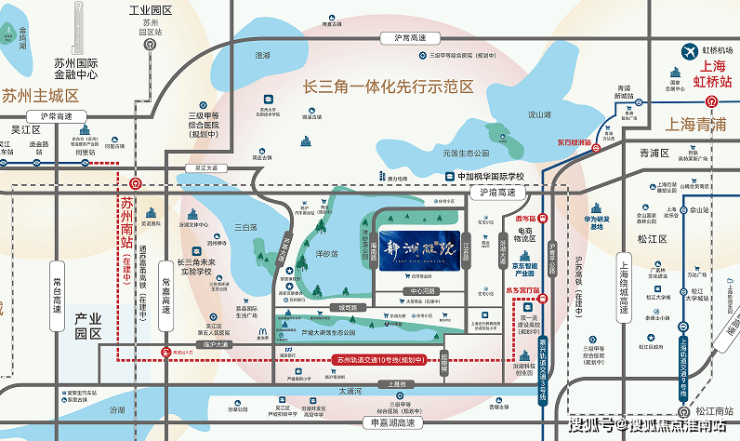 距苏州南站仅7公里,23-26分钟到虹桥;3分钟上高速,40分钟到虹桥;江浙沪两省一市,地铁无缝接轨。