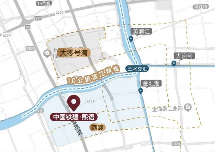西渡板块,北面有“大零号湾”和黄浦江滨江公共空间、南面有“奉贤新城绿环”规划、东面有“三水交汇之地”规划,与三大市级重要战略板块紧密拥抱