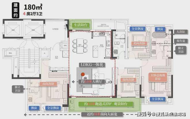建面约180㎡户型,南向开间达到了近18米,已经超越了园区奥体约225㎡户型,打造了同面积段的极致。全系全明卫生间,全屋多收纳空间,南向双套房。苏州狮山上润璟庭售楼处电话☎:400-8558-224