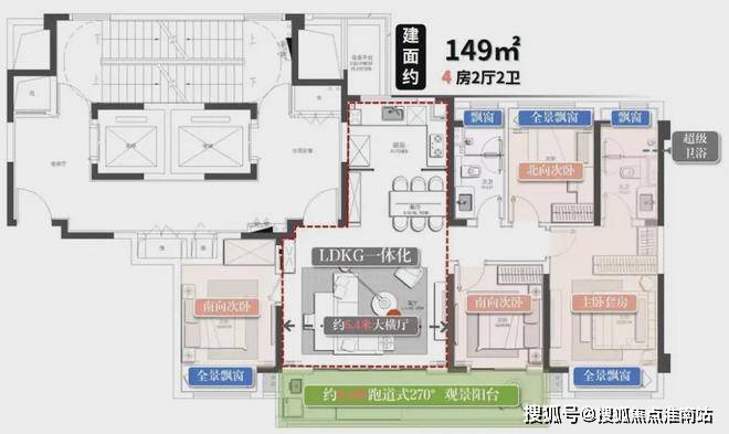 尤其是建面约149㎡户型,类一梯一户,业主一出电梯即可抵达私属百变功能区。四开间朝南,超大横厅开间约5.4米,和建发缦云约189㎡一样。