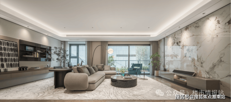 第三,户型拥有约3.3米的层高,更高的天花板让整个空间显得无比通透、宽敞、大气。