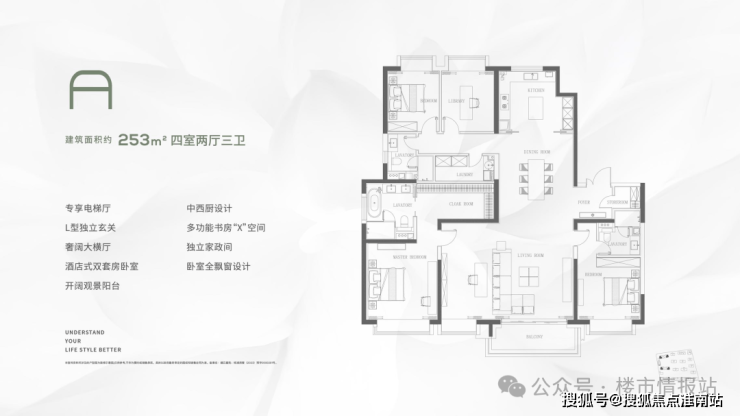 建面约253㎡的户型有几个重点: