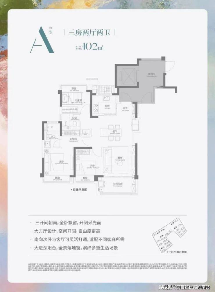 建面约102平3房2厅2卫(边户)