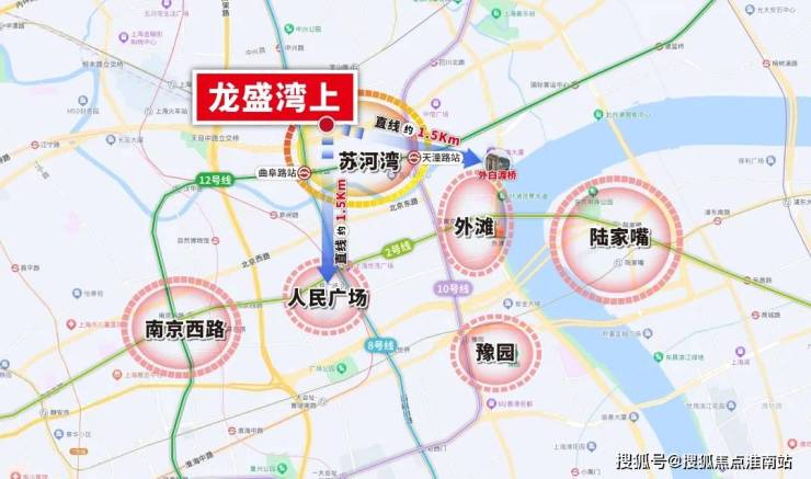 龙盛湾上位于静安区内环内苏河湾板块,天目中路88弄,地处上海“一江一河”(黄浦江、苏州河)战略的核心承载区。项目直线距离人民广场仅约1.5公里,这一地理位置的价值在上海堪称塔尖级别。