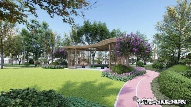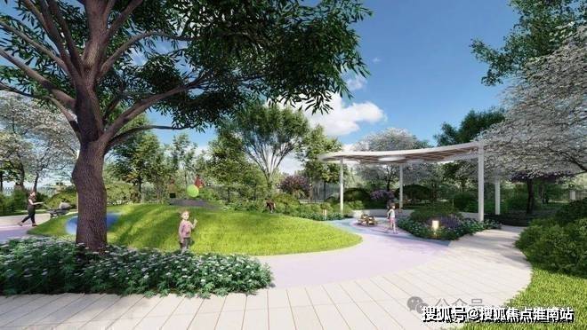 以自然会客厅为核心主景,融入艺术廊架、阳光大草坪、泛会所架空层、健康跑道、儿童乐园等功能场地
