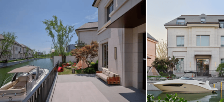 项目从此前曝光的设计方案就可以看出亮点,每一排别墅前都有一条渠道,引入水系,可以停游艇。