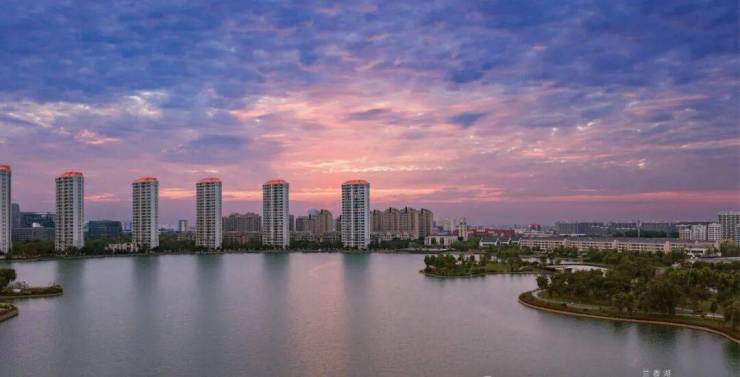 如今兰香湖的风景日趋成熟,湖岸风景线与建筑风景线相互映衬,水景、江景、楼景、桥景彼此交融,都市与生态之美于此交相辉映。