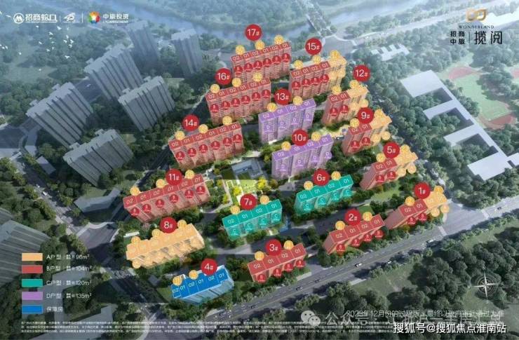 【招商中旅·揽阅】共计规划17栋12-14F小高层,首开楼栋位于整个项目的北侧,共3种户型,分别为建面约96㎡三房两卫、建面约104㎡三房两卫、建面约135㎡四房两卫。3种户型提供了全生命周期成长空间的方案。