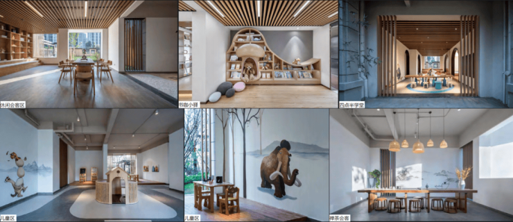 打造主题式架空层,打造成人、儿童、社区会客厅等功能,设置书法室、阅读、棋牌室等主题空间,构筑全龄社交生活场。