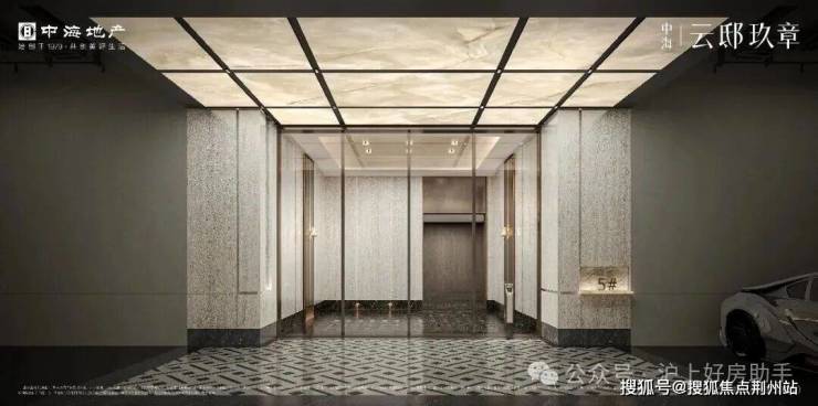 主入口约7米高约40米宽的奢华门头、挑高式的古铜色星空顶,地面选用天然大理石交织,进一步增强归家落客区的奢华感。