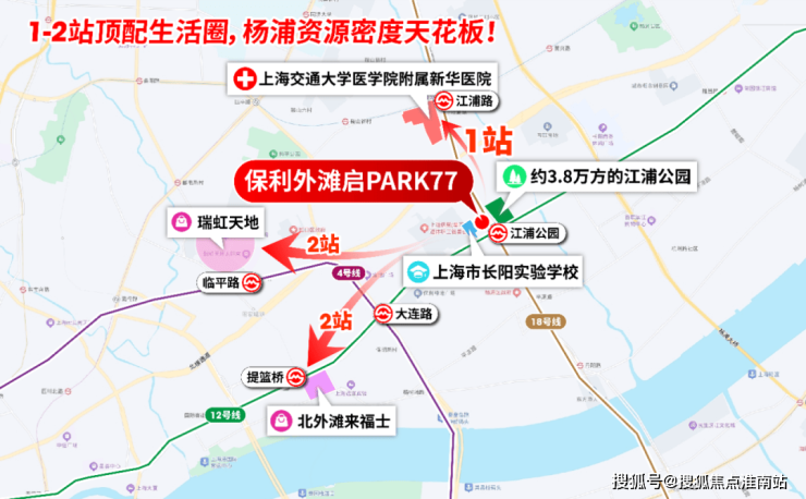 而保利外滩启PARK77与北外滩地王直线距离仅约2.2公里,未来将与北外滩共享界面更新、配套升级、生活方式迭代,更将同步承接价值的全面焕新 。