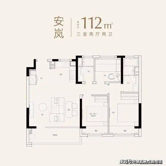 建面约112㎡三房两厅两卫