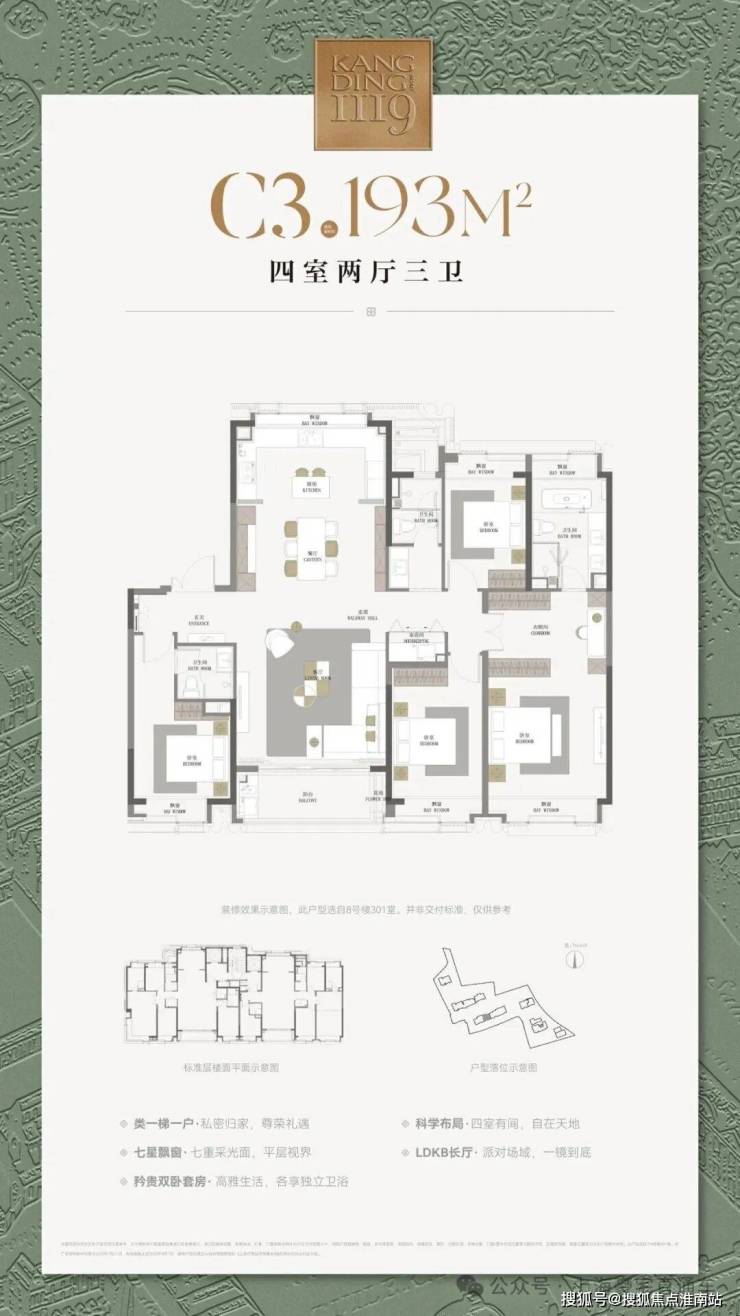 193㎡户型完全就是豪宅的大尺度!保守的说,可以跟市面上几乎所有230+㎡户型对标!
