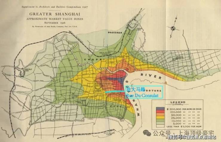 在讨论上海地段的时候,经常用来举例的一张1926年的地价图,如今在讨论嘉里金陵路项目的时候,重新溯源,金陵路的位置即地图上“法大马路(Rue Du Consulat)”的位置。当时来看,金陵路沿线属于第二梯段的地价,最深色的第一梯段的地价,即外滩、南京东路一线,从当时到现在都主要是商业办公组成。金陵路在住宅口径的角度去讨论,当时可以属于第一梯段。