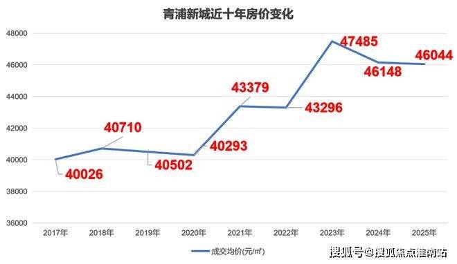 据克而瑞数据统计,青浦新城2017年房价就已经达到4万/㎡,最近两年更是涨到了4.6万/㎡。