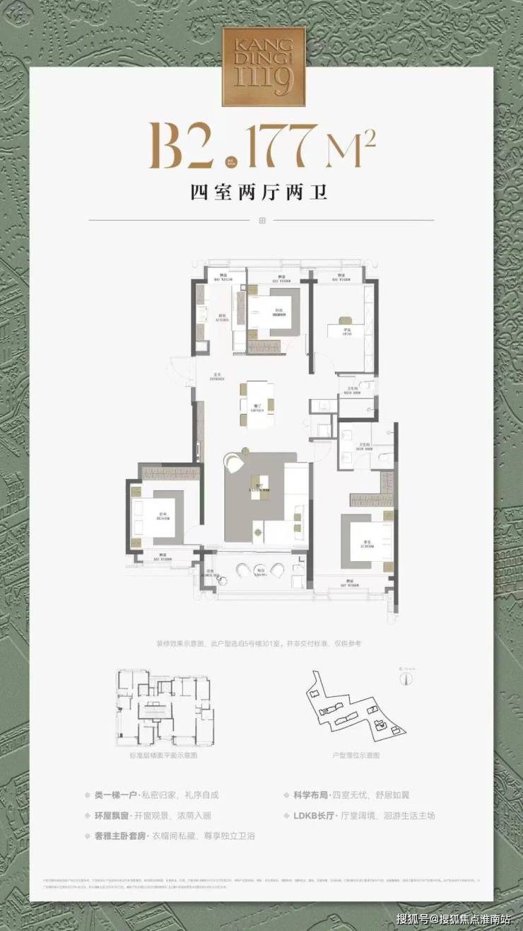 建筑面积约177㎡四房户型,6重采光面,室室皆阳,是对于预算更高的客户,招商给出的又一全新选择。