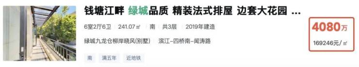 再把范围缩小到看滨江区的新楼盘,低密纯墅区那就更凤毛麟角了。二手也是“高低配”,如柳岸晓风的排屋成交单价 约17.85万/平 ,一套在挂牌的建面约241方房源总价高达 4080万 ! (数据来源:贝壳&安居客)