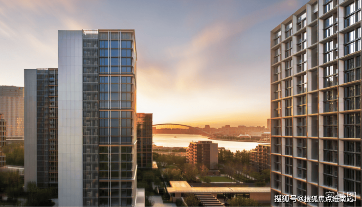 景观设计方面,保利世博天悦采用 引江入园、以水带路的手法,将滨江舒阔的国际生活平移到社区内,打造约 6万㎡景观秘境,媲美全球奢华酒店。采用大面积的留白和现代禅意的表现手法,呈现开阔舒展的质感。