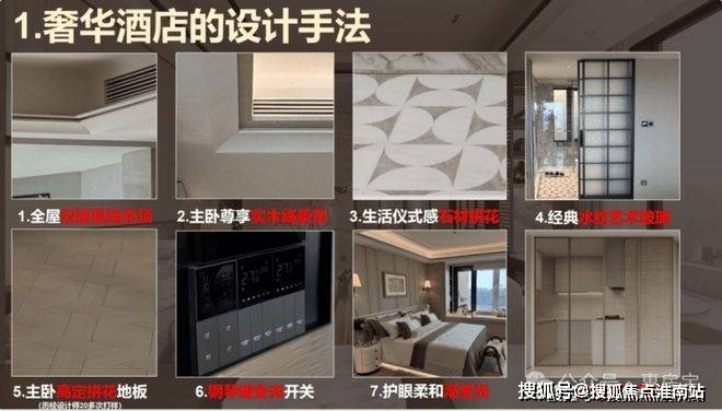 3.奢木:主卧使用奢品酒店同款拼花地板,次卧采用鱼骨拼地板,118户型使用影木实木贴皮木饰面,138户型使用橡木实木贴皮木饰面。