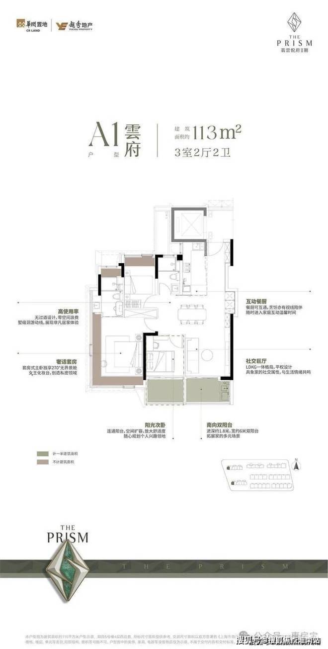 重点看一下A1约113㎡3房2厅2卫(边户):