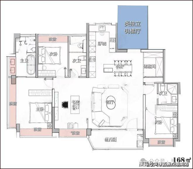 另外,网传二期也升级了140㎡和170㎡的户型配置。140㎡的四房是一梯一户+双套房设计,170㎡的大四房做了双主卧套+270度转角飘窗。