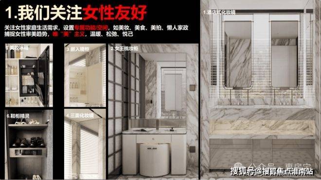 3.卫浴收纳系统:客卫薄柜收纳、侧边收纳柜、奢华皮革抽盒、彩妆收纳抽屉等,提升了卫浴空间的实用性。
