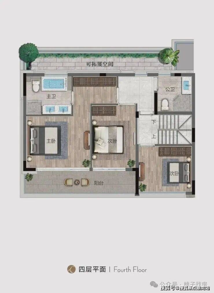 下叠带私享院子,下叠的一楼客餐厅直通约50-60㎡南向庭院,部分可达约100㎡花园,尺度豪华的主卧空间搭配足有7.2米长的连廊阳台,形成“主卧—书房—连廊阳台”的格局,即使起居在二层,也能与自然形成良好的互动。