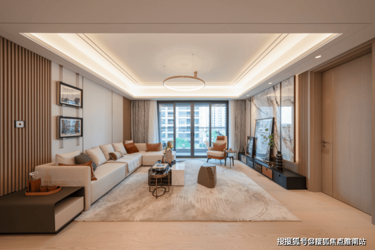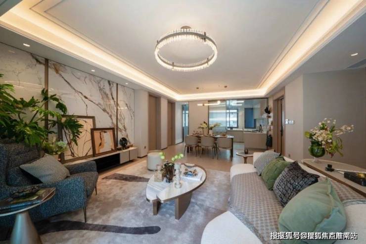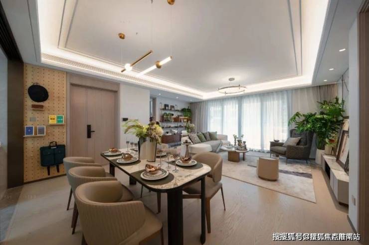 在景观打造方面,项目风格是新海派风格,特点是延续海派文化的典雅格调。整个社区采用“一环”“两轴”“三园”“六院”的空间结构,展现现代海派的精致人居空间。